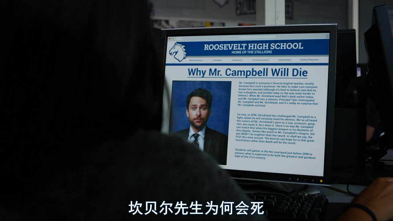 循规蹈矩的高中英语老师Andy Campbell(查理·戴饰)努力在学期最后一天平安度过。Andy没想到他无意中害了另一名老师Ron Strickland(艾斯·库珀饰)被开除。愤怒的Ron对Andy下战书,要Andy放学后别走。这场约架,变成了全校师生的焦点……