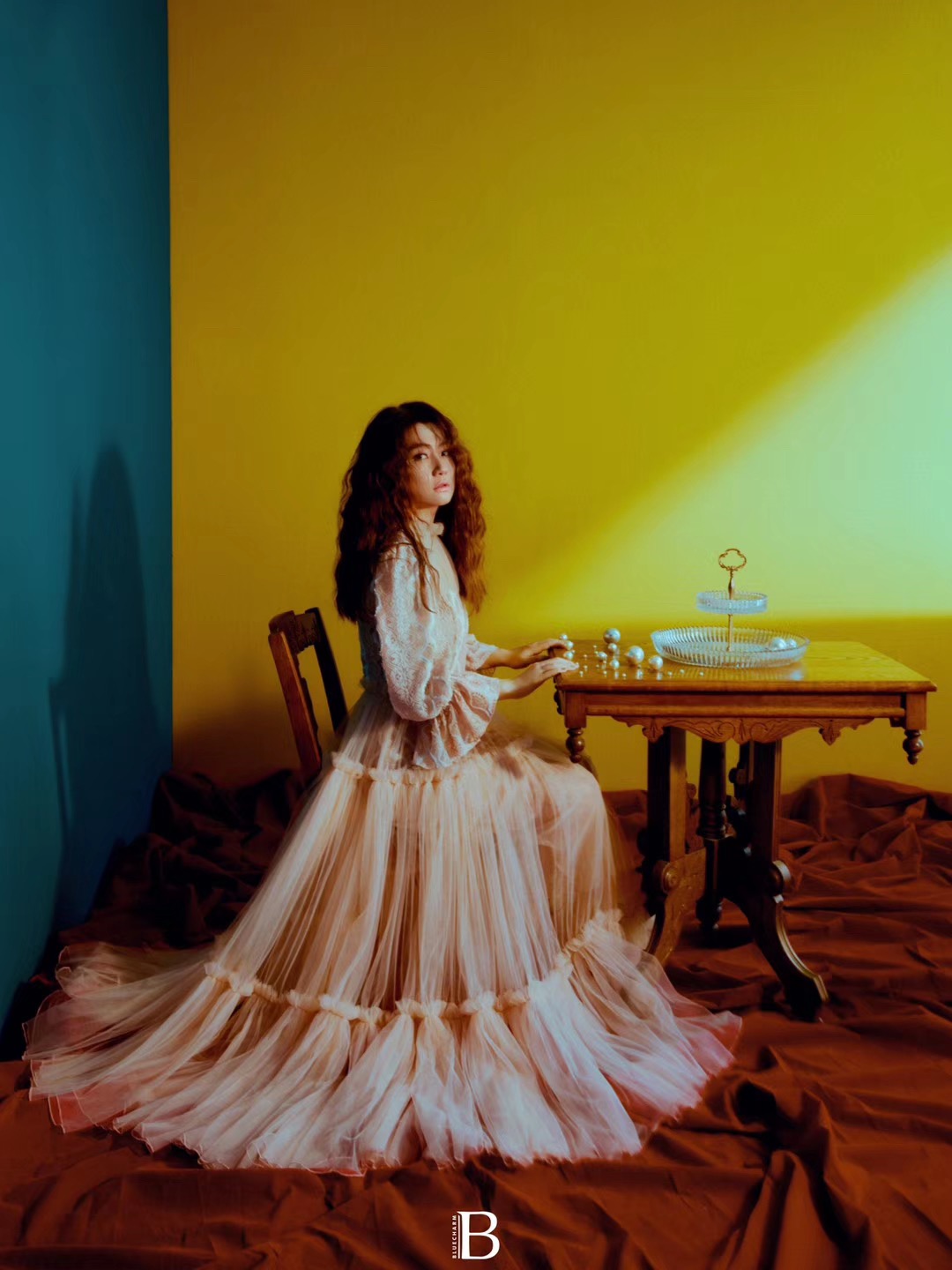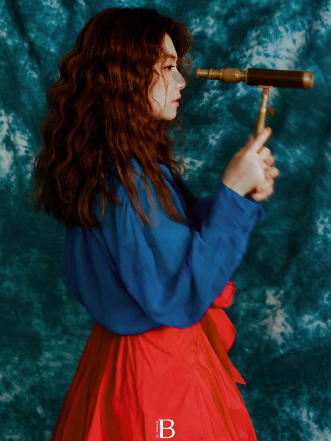 大片中,Selina(任家萱)这次尝试了蓬松饱满的吉普赛卷发,搭配少女感十足的粉色拖尾纱裙,梦幻浪漫,就像欧洲中世纪的公主,华丽优雅。少女手中摆弄着望远镜,用好奇去探索追寻这多彩的世界,诉说着积极坦然、从未改变的人生态度。