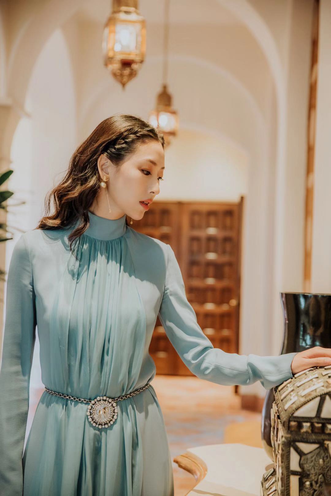 法式复古的优雅,英伦复古的率性,美式复古的摩登都被不少女艺人融入自己的日常穿搭中。近日,时尚双语主持人温雅在社交媒体上分享了一组盛夏写真美图,在紧跟随复古热潮的同时,却诠释出属于自己“古希腊风情“的独特韵味。镜头中,温雅置身于欧式复古的建筑之中,身穿湖蓝色雪纺高领拖地长裙,腰间独特造型的链条腰带别致优雅。