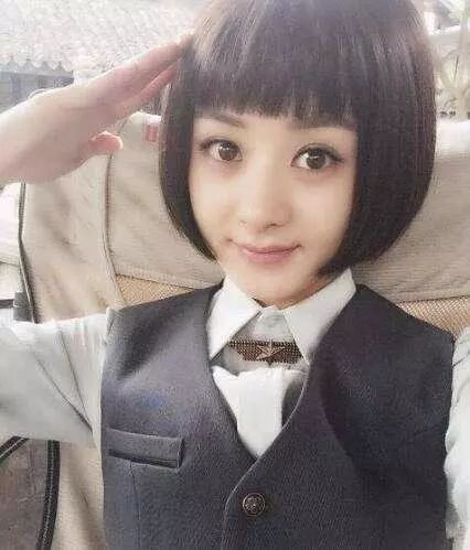 赵丽颖长得可爱然后性格又很酷,为戏剪着一刀切刘海穿着西装将她这两种美完美的结合,看着是又美又酷。