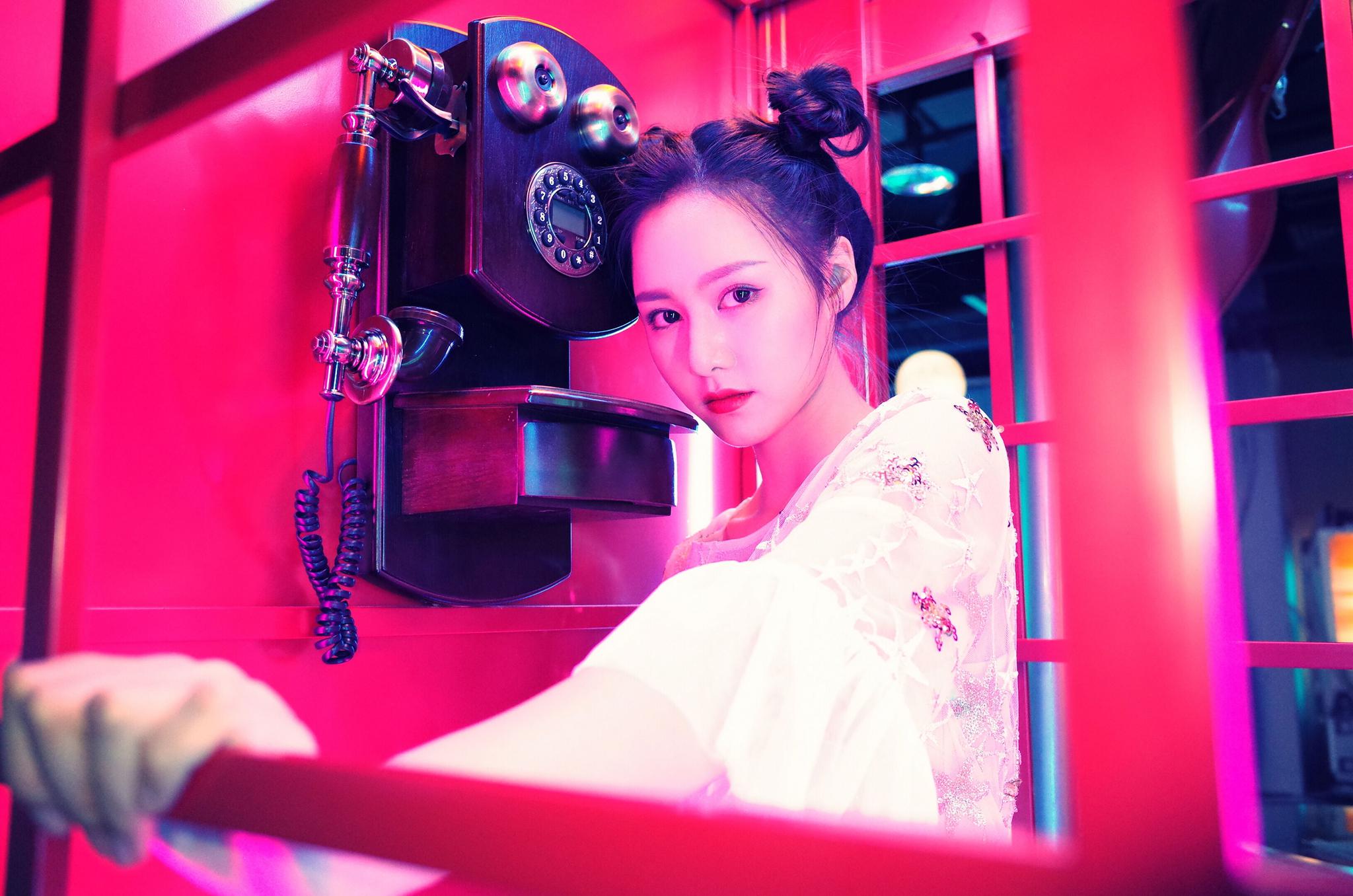 照片中,黄柳嫣时而等待,时而接起电话,时而露出搞怪的表情,好像电话是一个启动开关,而她正在与另一个自己通话。
