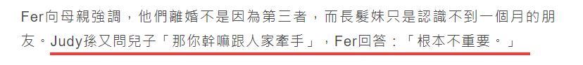 对此,孙莹莹的前婆婆,名媛Judy孙,就扮演了儿子的“发言人”,话里无处不透露出自己对儿媳的“偏爱”。