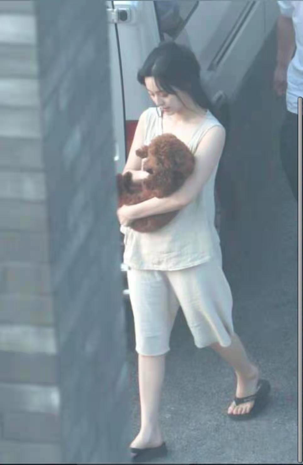 早期有范冰冰在片场一身背心短裤拖鞋搭配的抱狗照;