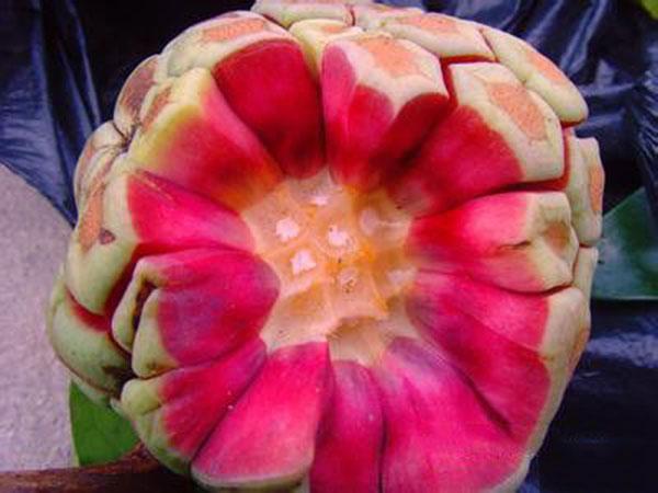 黑老虎,别名冷饭团、臭饭团、酒饭团、过山龙藤、大钻、万丈红、透地连珠、紫根藤、外红消、红过山、钻骨风、大叶南五味,多生于江西、福建、湖南、广东、广西、四川、贵州、云南等地;其根部,可用以行气活血,消肿止痛;经采集后将其切片,晒干入药。属五味子科南五味子属,木质常绿藤本野生水果植物。它果形奇特,营养与药用价值高,具有食用、观赏、美化、绿化及药用于一体,是新世纪最具开发价值的第三代水果稀品。黑老虎的形态特征是藤体,全株无毛。