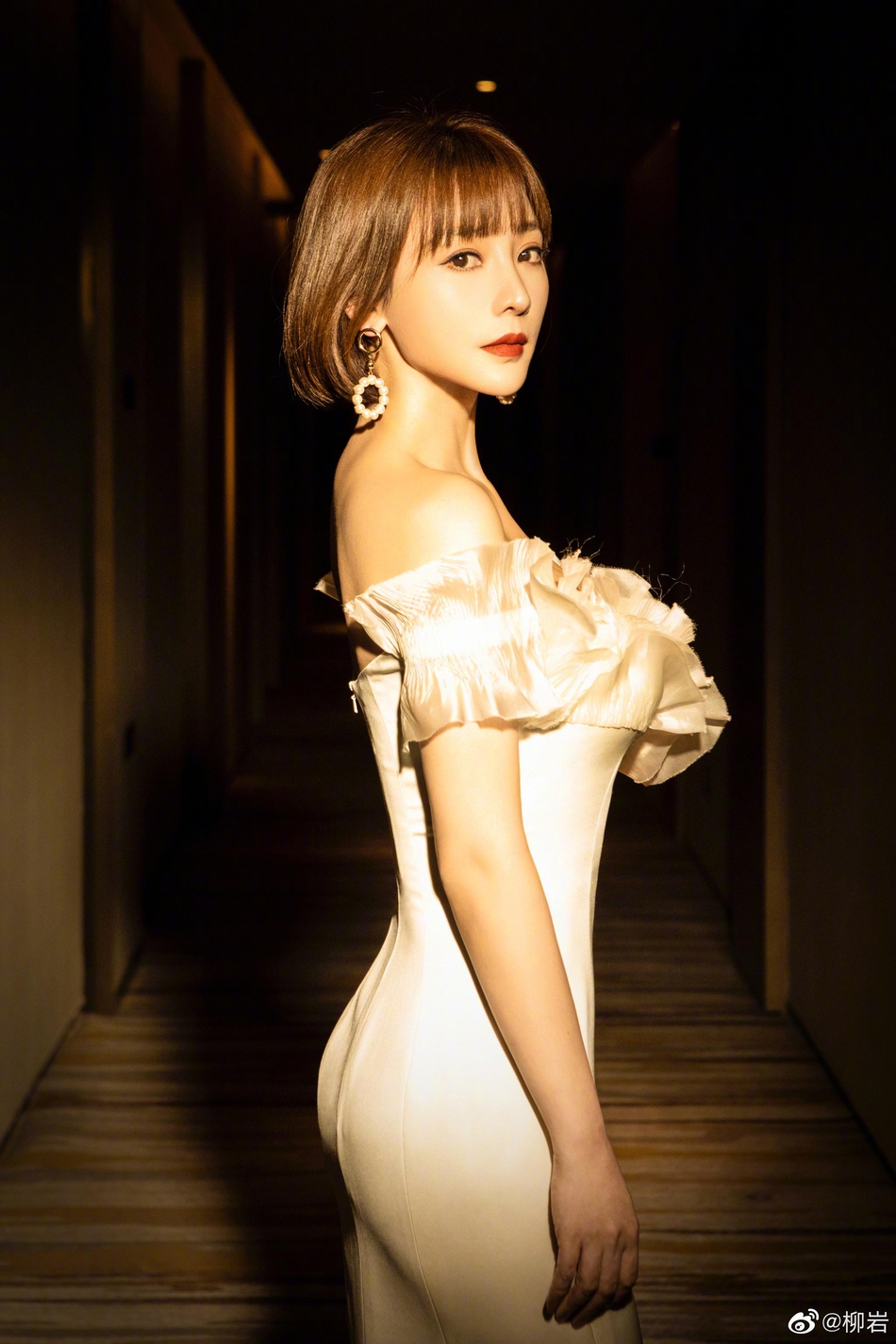 柳岩晒光影文艺写真 穿白色包身裙唯美动人[10P]