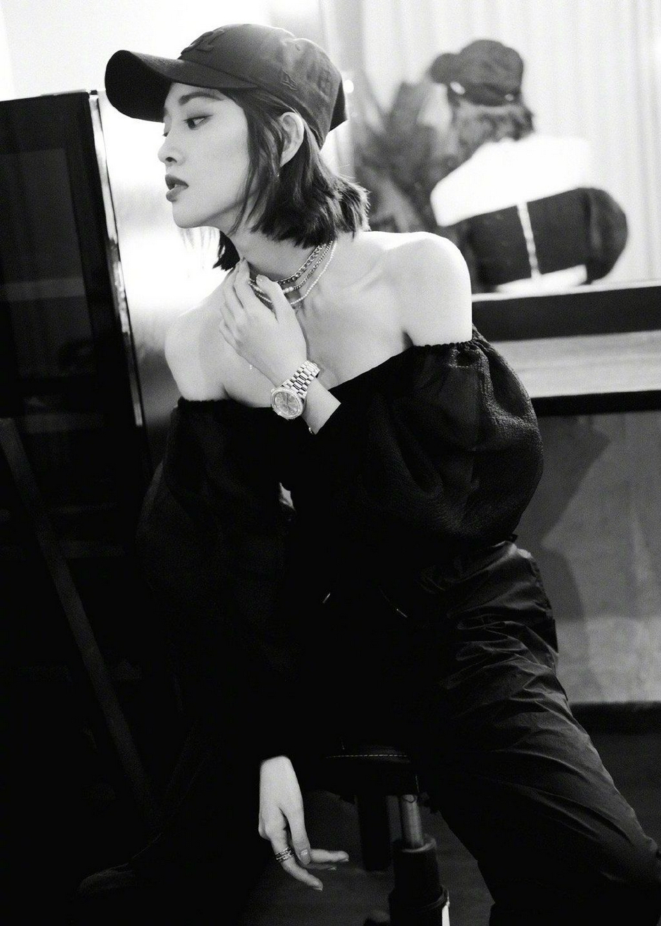 8月4日,唐艺昕为某杂志拍摄的甜酷视觉系大片释出。照片中,唐艺昕穿黑色泡泡袖上衣大秀锁骨,直角肩优越,棒球帽和金属配饰的选择,让整体look活泼不沉闷。