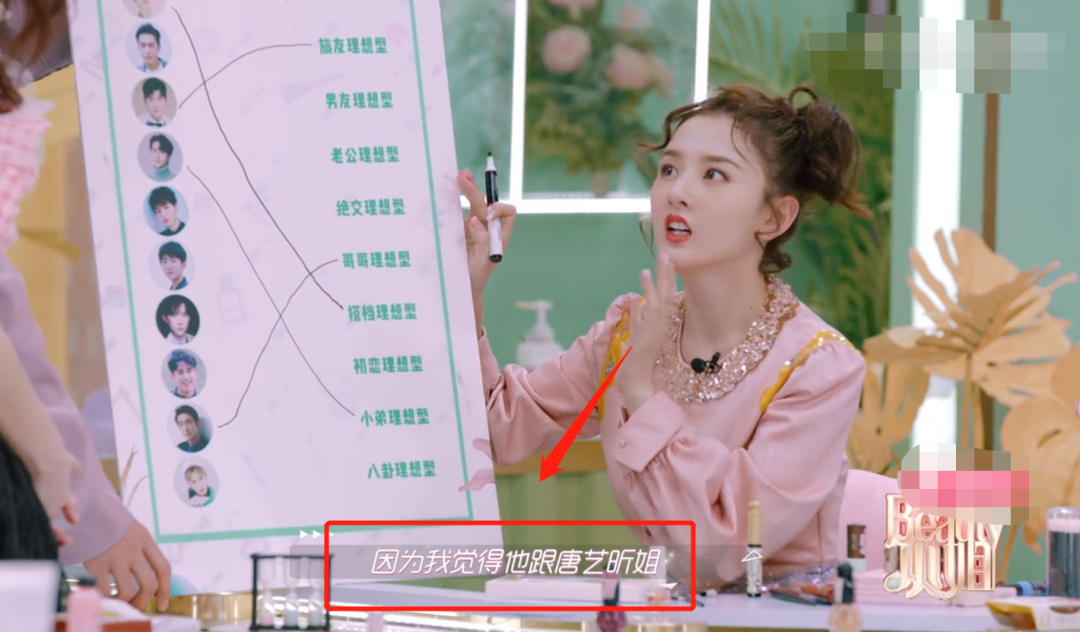 主持人要求用一幅画表达对爱情的态度,唐艺昕画了个有缺口的圆形,上面还有一对手牵手的小人。她说爱情是需要两个人一起经营的,而两个人共同维护的爱情才能堵住那个缺口。