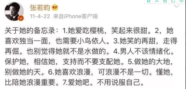 还记得张若昀早年在微博上写的“备忘录”小作文吗?