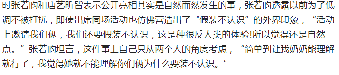 圈里也有很多人羡慕他俩,李一桐曾说,我们一起参加典礼时,无数人围在那里,但张若昀眼里只有唐艺昕。