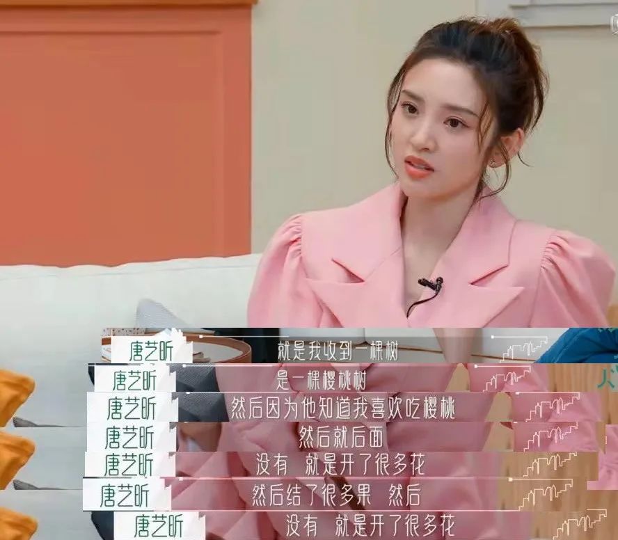 于是,唐艺昕就收到了一棵樱桃树,张若昀把它种在了自家后院,从种树,施肥,浇水,直到开花结出樱桃。