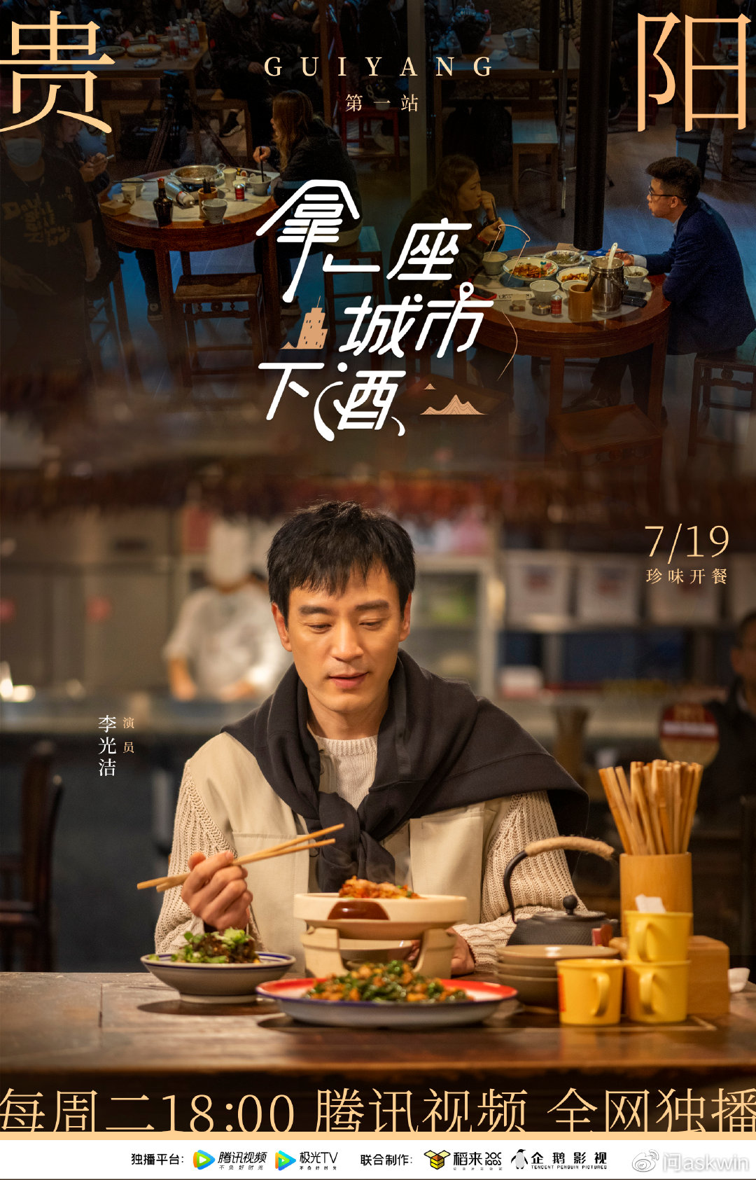 由《风味人间》团队出品、李光洁担任美食探索者的美食纪录片《拿一座城市下酒》将于今晚18:00在腾讯视频播出。李光洁以演员的身份,走访于不同城市之间,品尝当地美味,在觥筹交错间了解各行各业人们和美食的故事,让人充满期待。 在节目组已经释出的预告当中,实力派演员李光洁将以美食探索者的身份,探寻南京、广州、济南、成都、长沙、贵阳、杭州和郑州八座城市,寻觅每一座城市极具地方特色的美食,品尝24道城市珍味。李光洁将会带着相机定格美好瞬间,穿梭在不同城市之间感受城市的律动,品尝当地美食风味,也在漫步中邂逅了各行各业的百姓人家,展现出亲切风趣的人格魅力,挖掘出食物背后丰富的城市文化和情感。 据悉,由实力派演员李光洁主演的电视剧《野蛮生长》已于三月杀青,即将和观众见面由。另一部他特别出演的电视剧《县委大院》也正在拍摄当中,在剧中饰演九原县县长曹立新,敬请期待。此外,由李光洁特别出演的系列剧《庭外》正在热播,他会在《庭外·落水者》篇中正式上线,期待李光洁的精彩演绎。