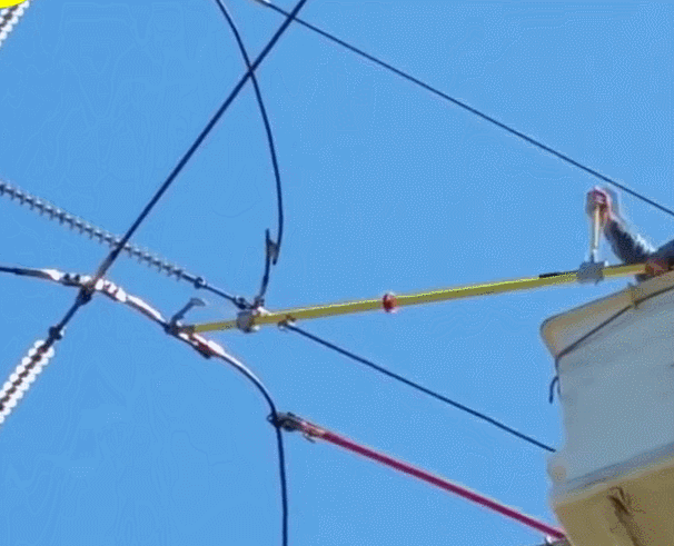 47. 剪断高压电线的瞬间是电力设施维护的一部分。