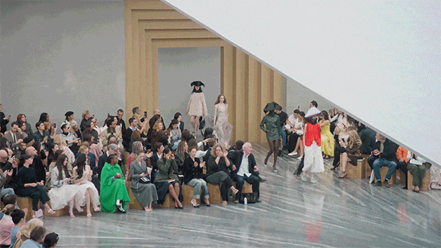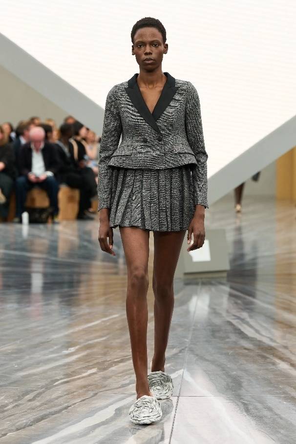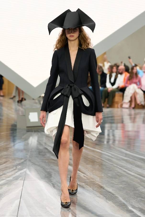Jonathan Anderson 于2025年正式接掌 Dior 女装、男装及高定系列,其首个女装大秀(2026春夏)被业界视为“任务艰巨但收获好评”的里程碑 3。他并未抛弃 Dior 的优雅基因,而是通过“与历史对话”的方式,将1947年 New Look 的廓形、Bar Jacket、蝴蝶结等元素进行解构与再生,赋予其呼吸感与当下性 3。秀场中央的倒金字塔屏幕播放历任总监经典片段,模特身着“当代版本”的历史服装,强化了这种时空对话 。