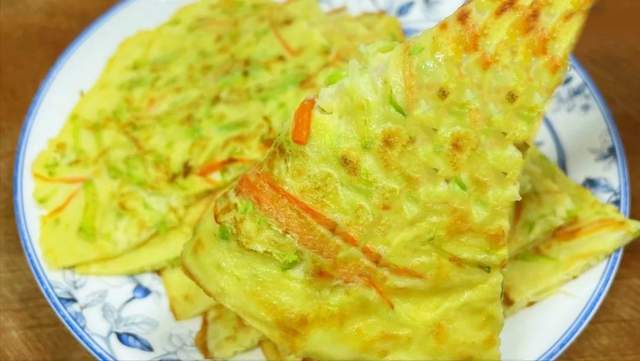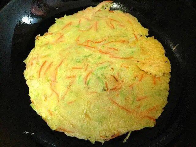 4、一次可以做多一点面糊,但不要一次全烙完,面糊放久了容易出水,最好现调现烙。如果实在想提前准备,可以把蔬菜擦好丝放冰箱,早上再调面糊。
