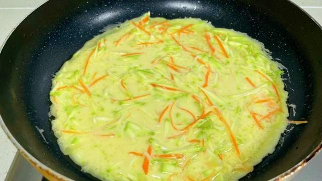 这些食材都是家里常备的,不用特意去买,特别方便。西葫芦和胡萝卜也可以换成其他蔬菜,比如土豆丝、菠菜碎等等,灵活度超高。
