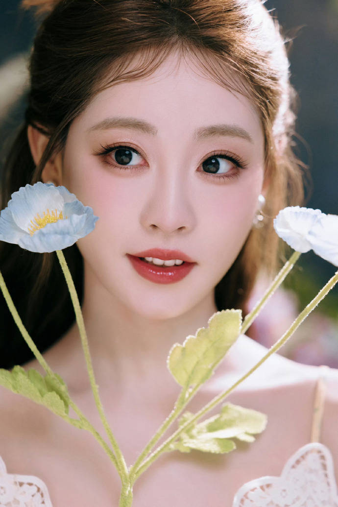 挺直的鼻梁和小巧的嘴唇,组合在一起显得格外协调与迷人。她的面容带着一种古典的韵味,温婉中透着灵动,无论是浅笑还是沉思,都能散发出一种令人陶醉的魅力。