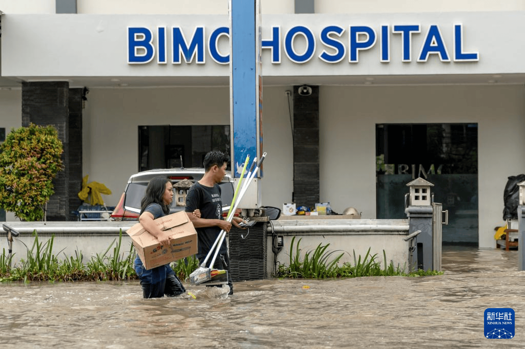 当地时间2025年9月10日,印度尼西亚巴厘岛库塔,人们涉水前行。连日来,印度尼西亚巴厘岛和东努沙登加拉省持续暴雨引发洪水,已造成至少19人死亡、10人失踪。新华社发(迪基 摄)