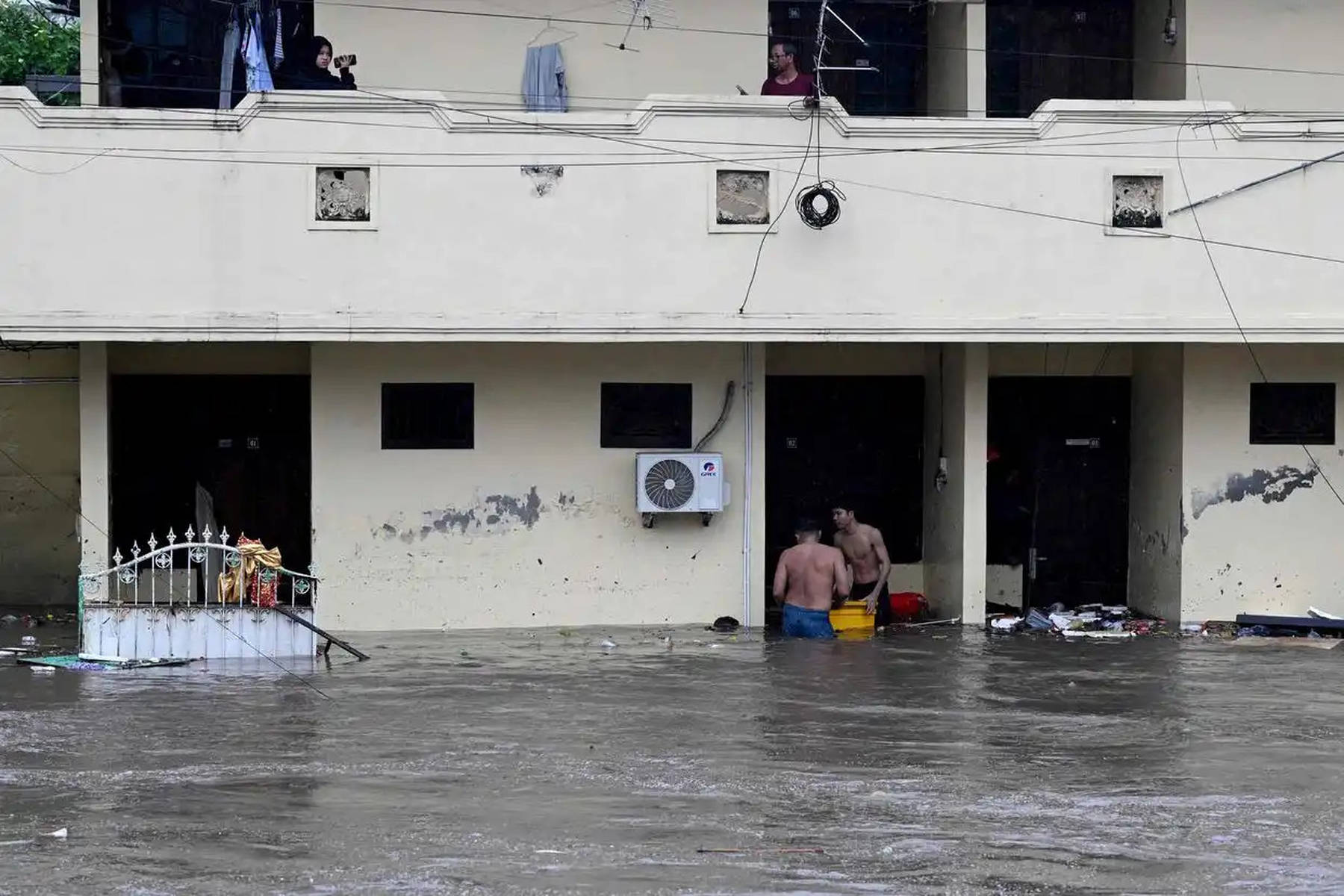 当地时间2025年9月10日,印度尼西亚巴厘岛的登巴萨,洪水对建筑造成破坏。受暴雨持续影响,印度尼西亚的旅游胜地巴厘岛等地发生洪灾。新华社/法新
