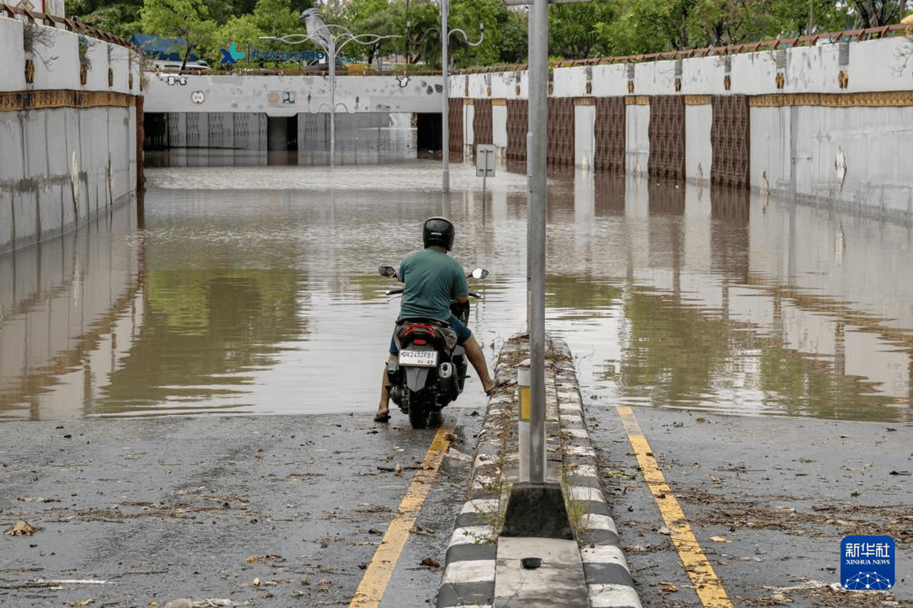 当地时间2025年9月10日,印度尼西亚巴厘岛库塔,道路被洪水淹没。连日来,印度尼西亚巴厘岛和东努沙登加拉省持续暴雨引发洪水,已造成至少19人死亡、10人失踪。新华社发(迪基 摄)