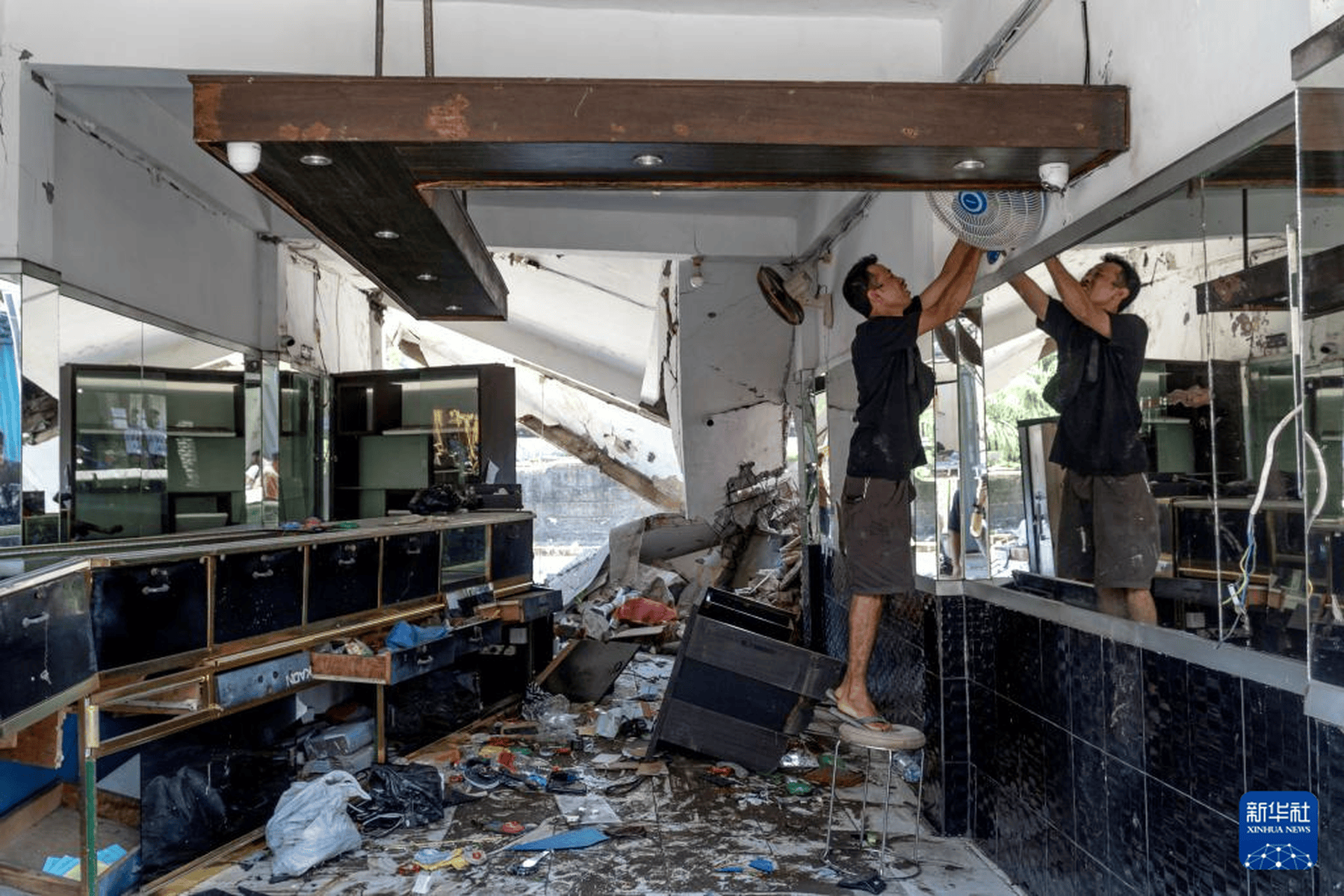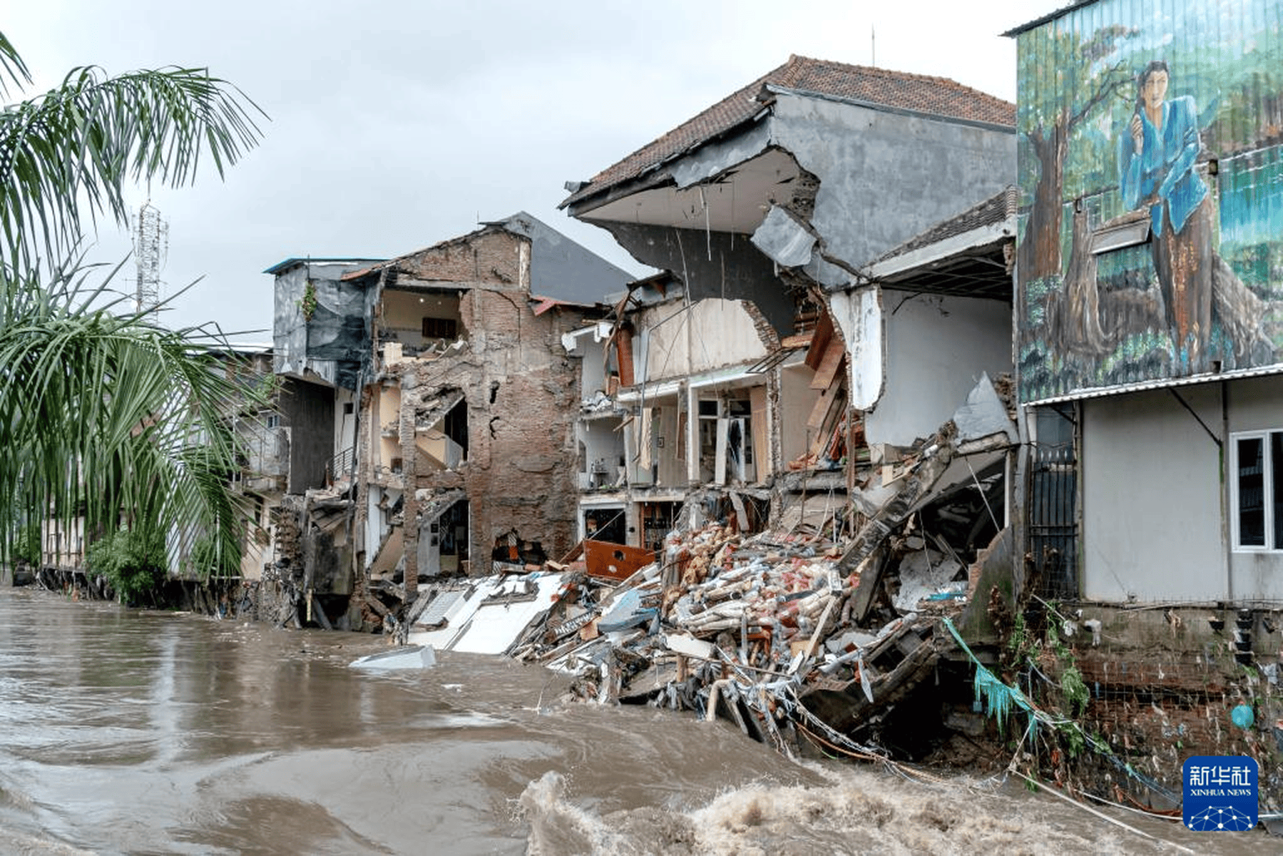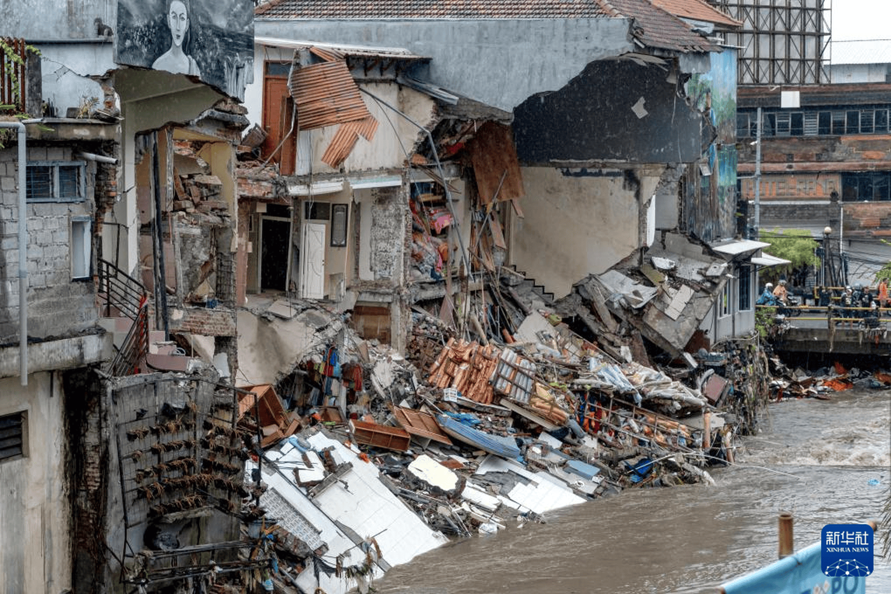 当地时间2025年9月10日,印度尼西亚巴厘岛登巴萨,遭到破坏的建筑。连日来,印度尼西亚巴厘岛和东努沙登加拉省持续暴雨引发洪水,已造成至少19人死亡、10人失踪。新华社发(迪基 摄)