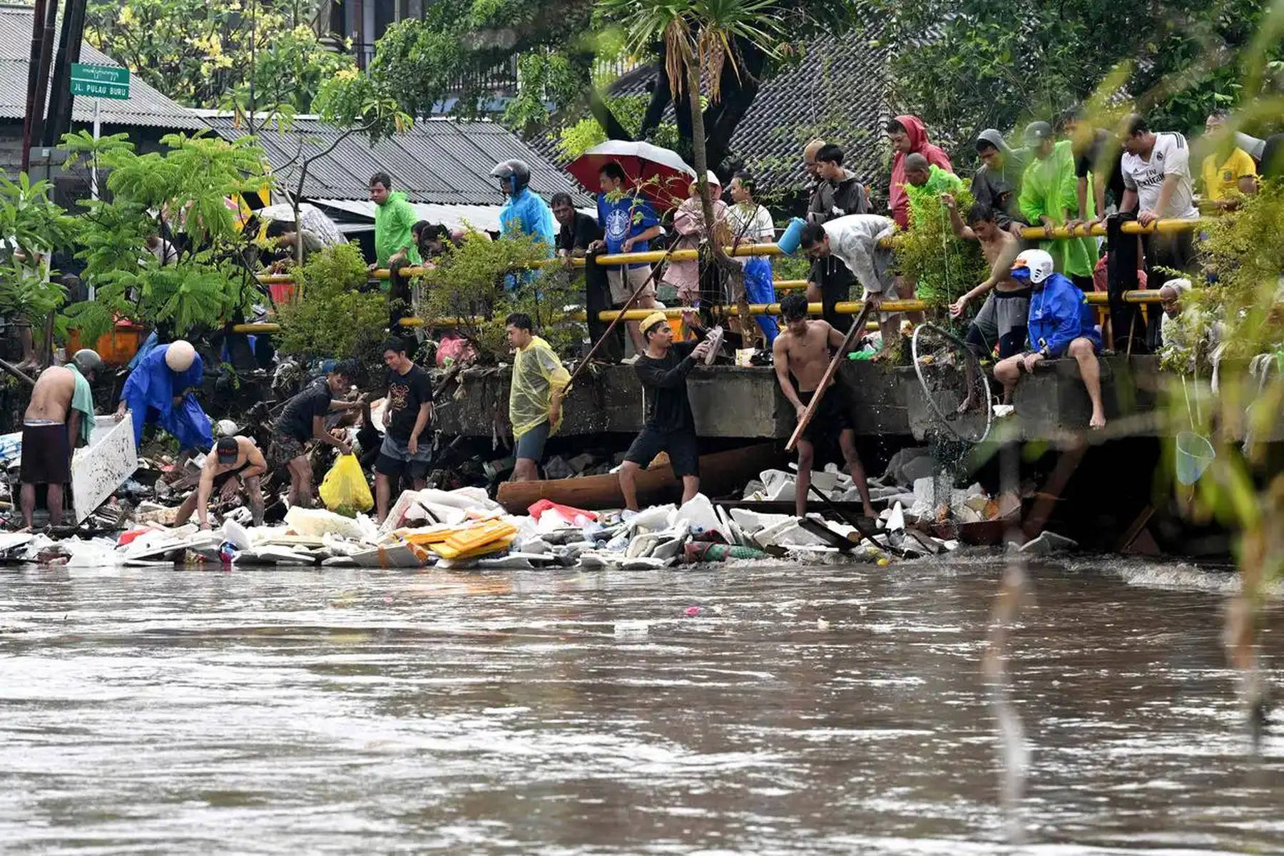当地时间2025年9月10日,印度尼西亚巴厘岛的登巴萨,人们在洪水过後清理街道。受暴雨持续影响,印度尼西亚的旅游胜地巴厘岛等地发生洪灾。新华社/欧新
