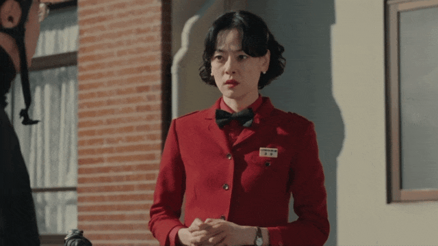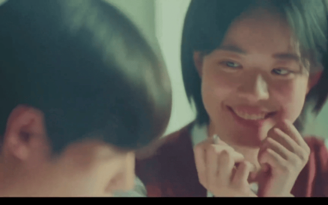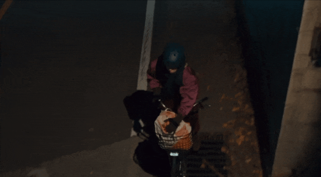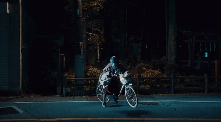 镜头一转,清美依旧安然无恙地坐在单车上👇