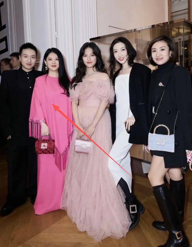 一身玫红色长裙加身的李湘,站在王诗龄旁边更像是一个“贵妇”。