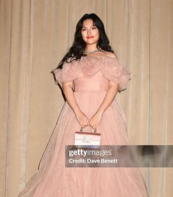 戴着超大的钻石项链站在红毯上,丝毫看不出还没有成年。