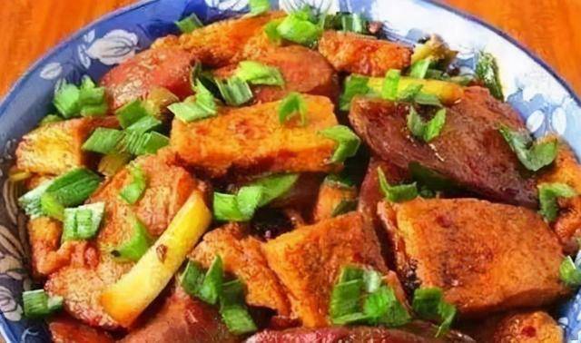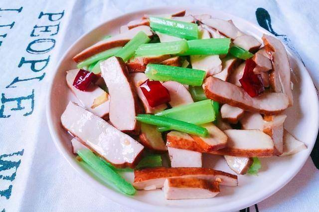 食材:千叶豆腐、香肠、青辣椒、蒜、油盐
