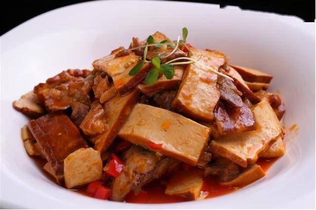 4.翻炒几下后加入千叶豆腐片翻炒;