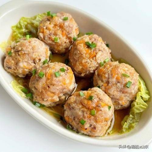 4.手上沾点清水,取适量肉泥团成大小均匀的丸子,摆进盘子里。