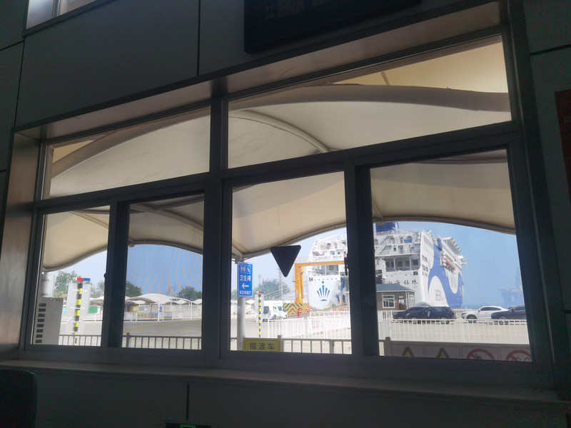 11.04到达福山下高速,高速费92元。11:40到达烟台客运站,老公开着车接受安检,上船。我走到客运站,在候船厅等候,窗外就是我们要乘的游轮“渤海钻珠”号。