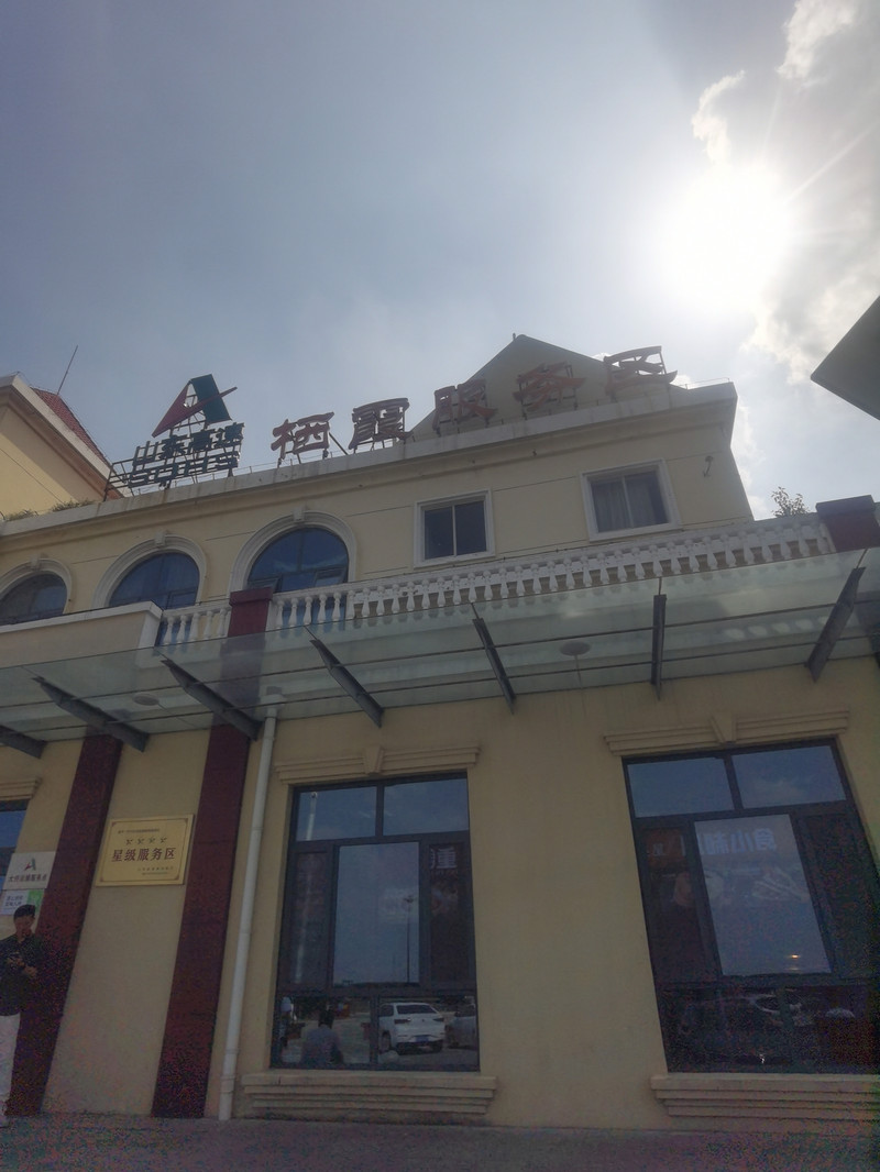9:52过了莱阳服务区,这是我们路过的第三个服务区,都是很小规模,有一些基本服务。和南方的服务区不一样,南方服务区一个比一个奢华,超市,便利店,各种餐厅都有,这是因为地域的富裕程度不同吗?服务理念不一样?
