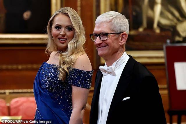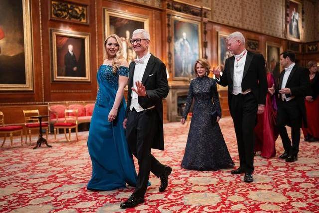 一袭皇家蓝平肩长礼服,上面星星点点的钻石镶嵌,同框苹果CEO蒂姆·库克的现场,无不彰显着蒂芙尼高贵而受欢迎的贵宾身份。