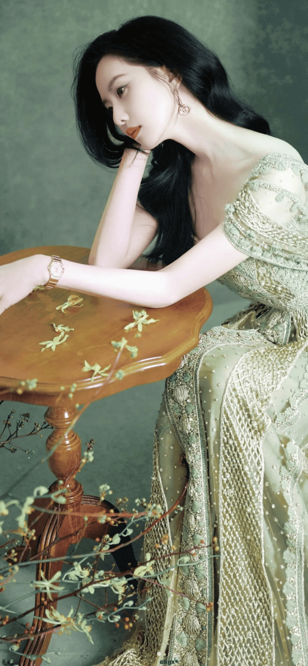拍摄绿裙大片时,她对细节的执着堪比文物修复师——裙摆的褶皱要刚好垂到脚踝,发间的玉簪得和耳坠同色系,连指尖的甲油都要选透亮的薄荷绿。工作人员爆料:“诗诗拍完一组照能蹲在镜子前调整半小时裙摆弧度,嘴里还念叨‘这个角度光影更像晨露’。”可正是这份较真,让她在《流金岁月》中仅凭一个撑伞走路的镜头就登上热搜,网友直呼:“这哪是穿绿裙?分明是林间走出来的青鸾仙子!”