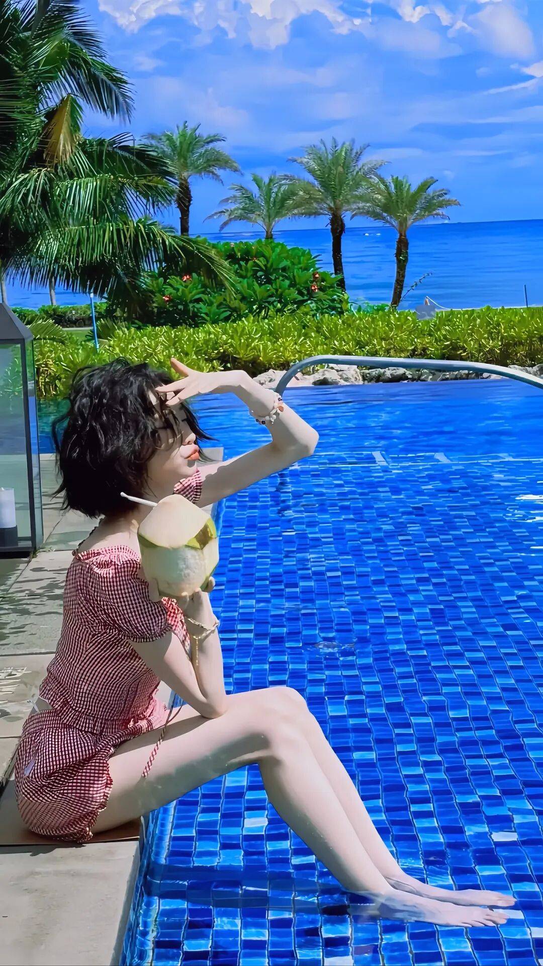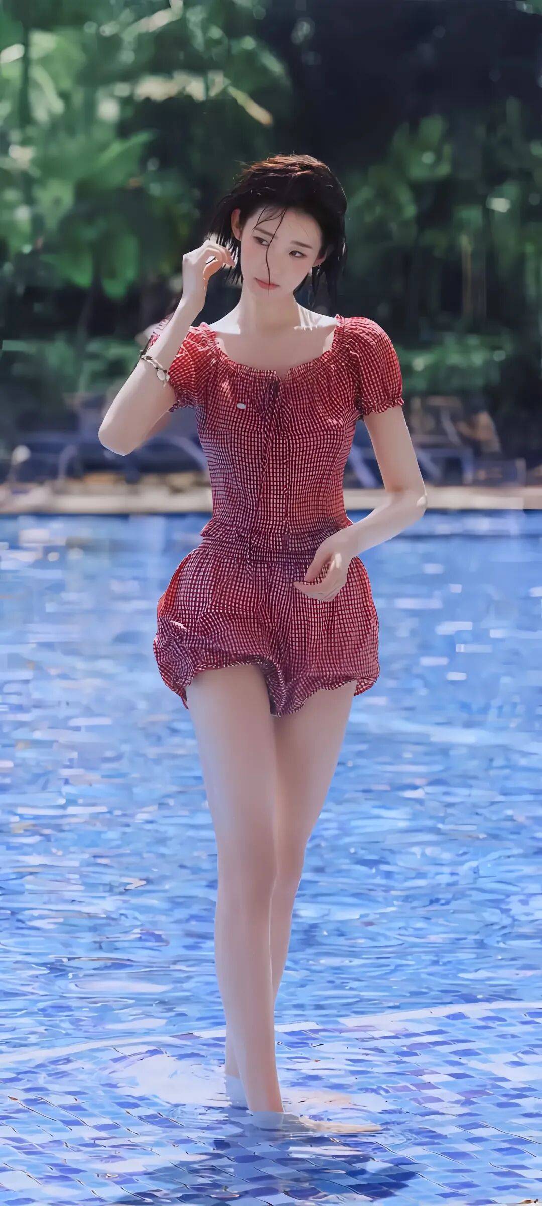家人们,张艺凡这组泳池写真,我真是看一遍爱一遍,完全被拿捏得死死的!你看她那身红格纹泳衣,配上那蓝汪汪的池水,这色彩搭配简直绝了!就像从清新漫画里走出来的少女一样,满满的青春活力都要溢出屏幕啦。我在屏幕上看到这组照片的时候,眼睛都直了,心里直呼“太美了”!