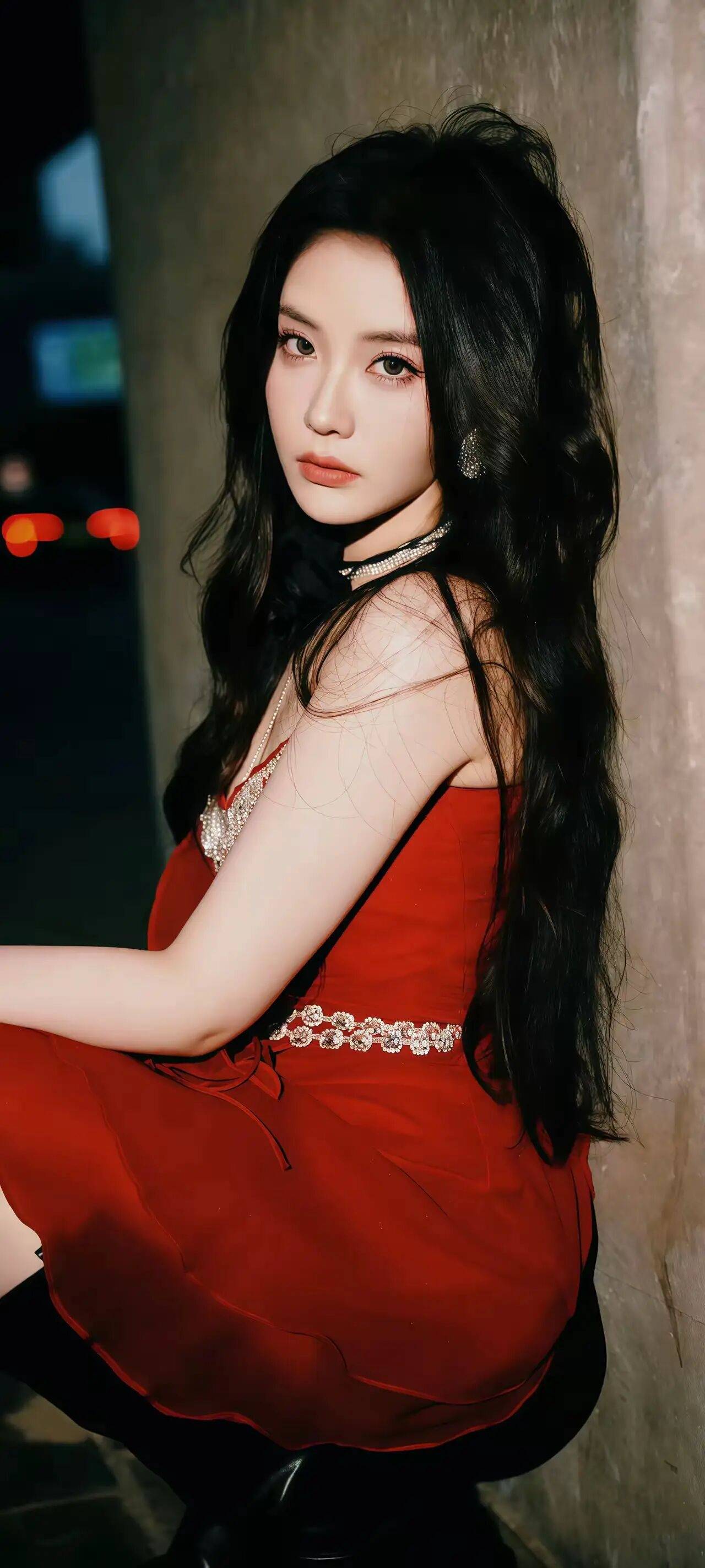 她穿红色吊带裙的那组照片,更是将她的性感与妩媚展现得淋漓尽致。红色的裙子衬得她肤色如雪,吊带的设计露出她精致的锁骨和优美的肩线。她的长发卷曲地披在肩头,眼神深邃而迷人,红唇微启,仿佛在诉说着无声的诱惑。这谁看了不心动啊!