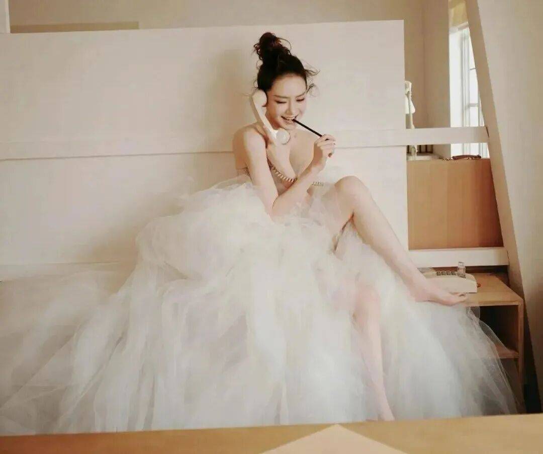 只见她身着一袭白色抹胸纱裙惊艳登场,那模样,活脱脱就是从梦幻童话里走出来的公主。她的肩颈线条笔直又优雅,就像天鹅引颈时那完美的弧度,自带一种高贵的气质。这线条,不知道得让多少女生羡慕到跺脚,又让多少男生为之倾倒。而那轻盈蓬松的网纱裙摆,随着她的动作微微飘动,仿佛云雾缭绕,给她增添了一份飘逸又高级的感觉。