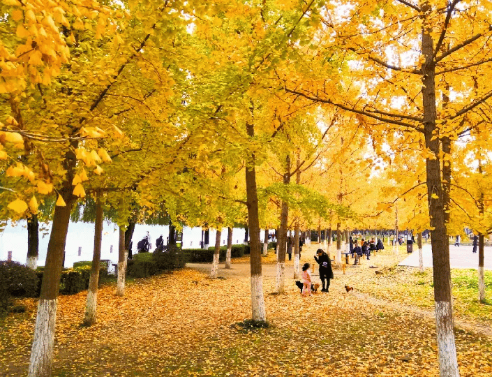 晚秋时节,天气逐渐变冷,银杏树的叶子从淡黄变为焦黄,一眼望去更多了几分灵动的美。