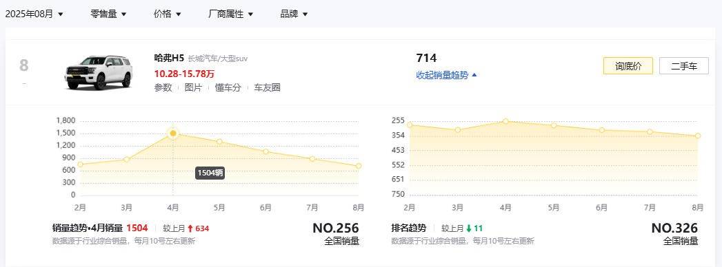 最后,哈弗H5在8月份的销量是714辆,且已经连续多月销量在往下滑。对于这种销量情况,其实我有些不解,毕竟现在它现在终端优惠挺大的,产品力也还行,最低甚至只要12万多就能买。那花12万多就买台这么大的工具属性车,应该怎么着也不会亏啊。所以,哈弗H5,你们觉得它怎么样?评论区里留言说说看。(文/优视汽车 大卓 )
