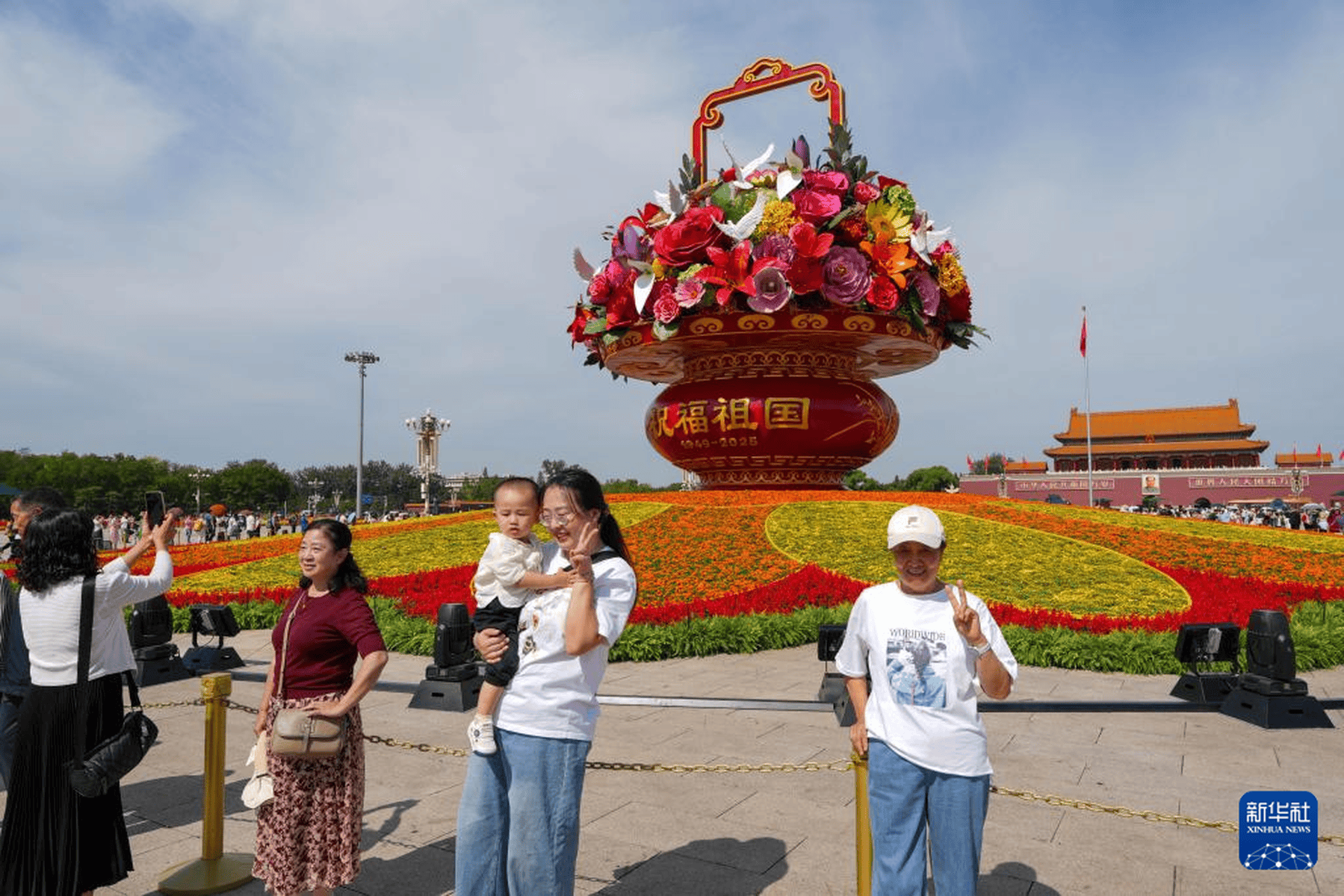 自花篮亮相以来,天安门广场吸引了大量游客前来观赏。许多游客表示,这一壮观的花坛不仅让他们感受到了浓厚的节日氛围,也让他们更加深刻地体会到了祖国的繁荣昌盛。游客们纷纷在花篮前拍照留念,记录下这一美好的时刻。