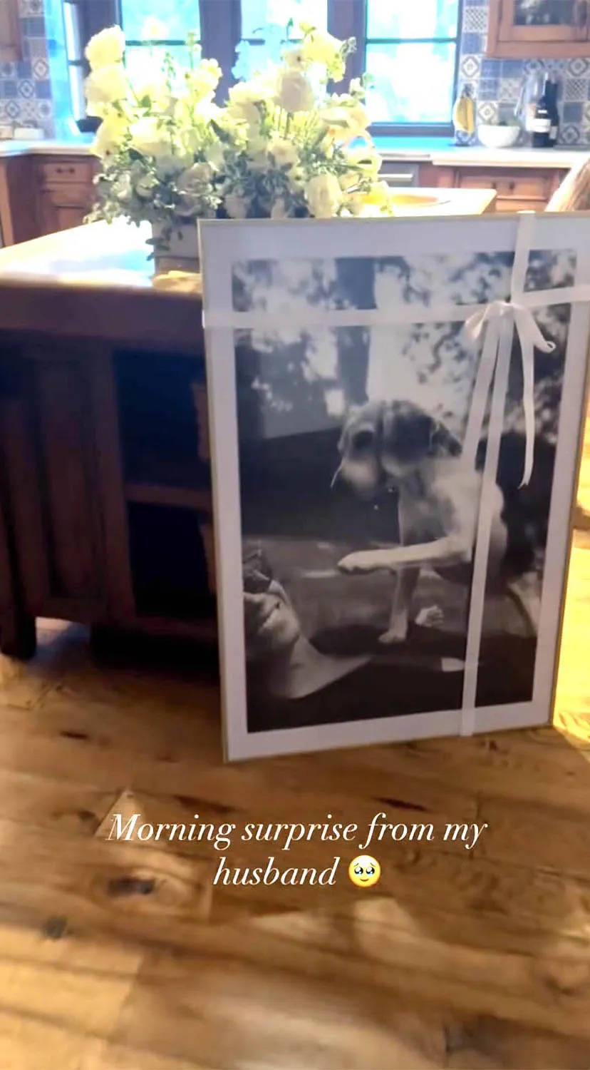 接着说8月26日的最新动态:梅根在当地时间这天分享了一段由4岁女儿莉莉贝特担纲主演的新视频。她的配文写着“来自丈夫的早晨惊喜”,配上一个感动的表情符号。所谓的“惊喜”其实是一张哈里王子打印的盖伊狗狗的黑白照片。盖伊是梅根在2015年收养的宠物狗,今年1月去世。