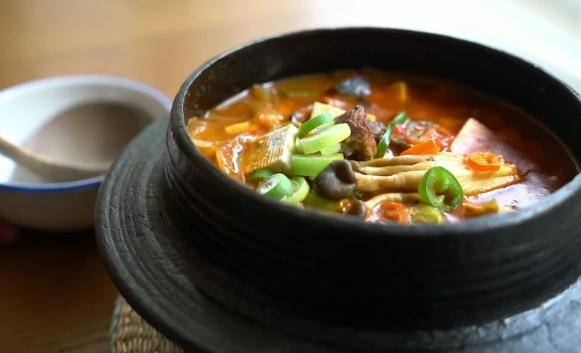 除了稀饭,大酱汤也是许多朝鲜家庭早餐的常见搭档。大酱汤的锅里常常弥漫着香气,大酱是由发酵黄豆做成的,经过压制成块后再碾成粉。汤底一般用晒干的海带或者小鱼干熬制而成,再放入嫩豆腐和切好的野菜,加入适量的大酱,随着汤水的翻滚,大酱的浓烈味道逐渐变得柔和,却依然保留着浓郁的风味。