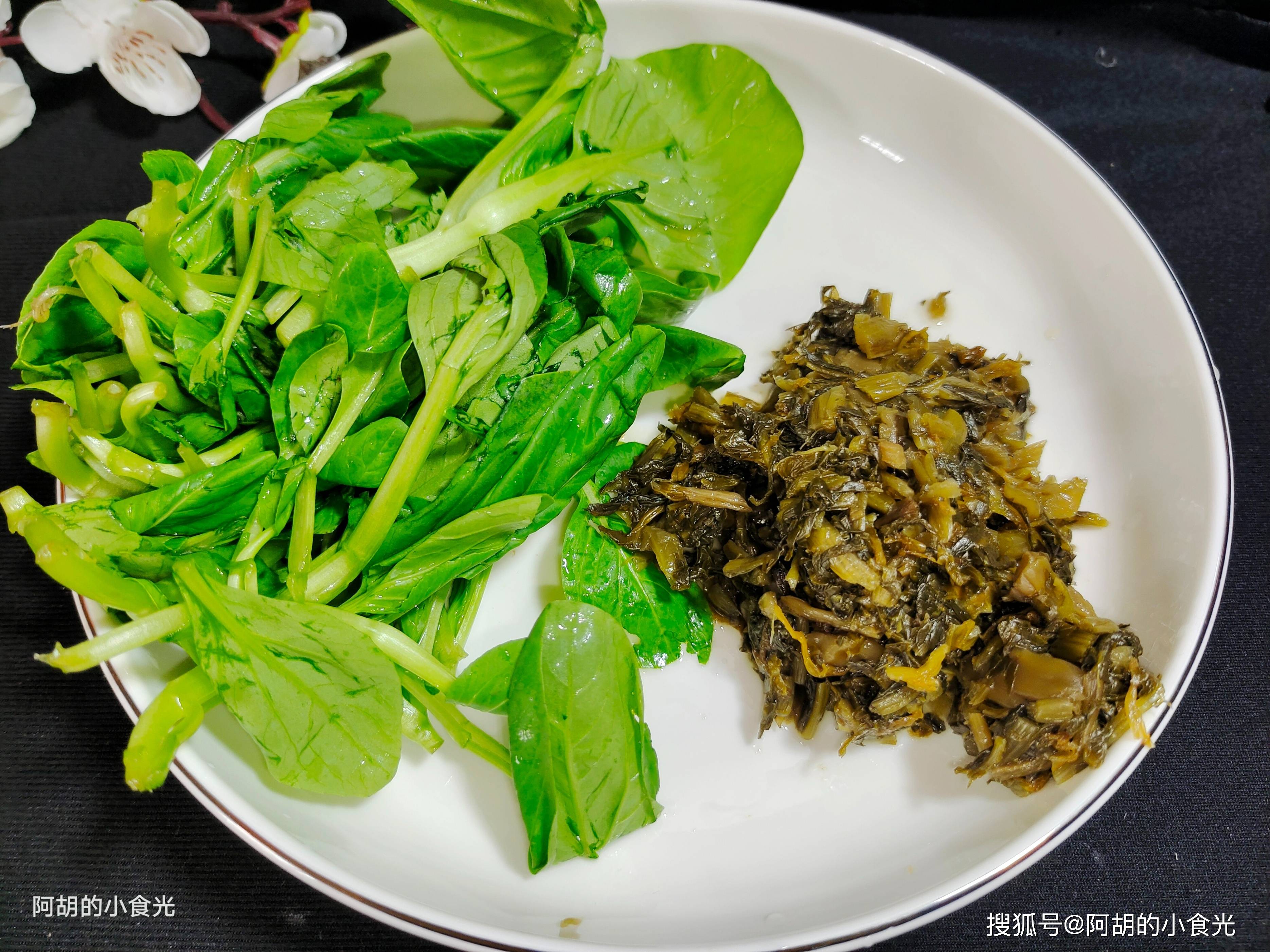 2. 雪菜洗净后挤干水分,切成碎末备用。