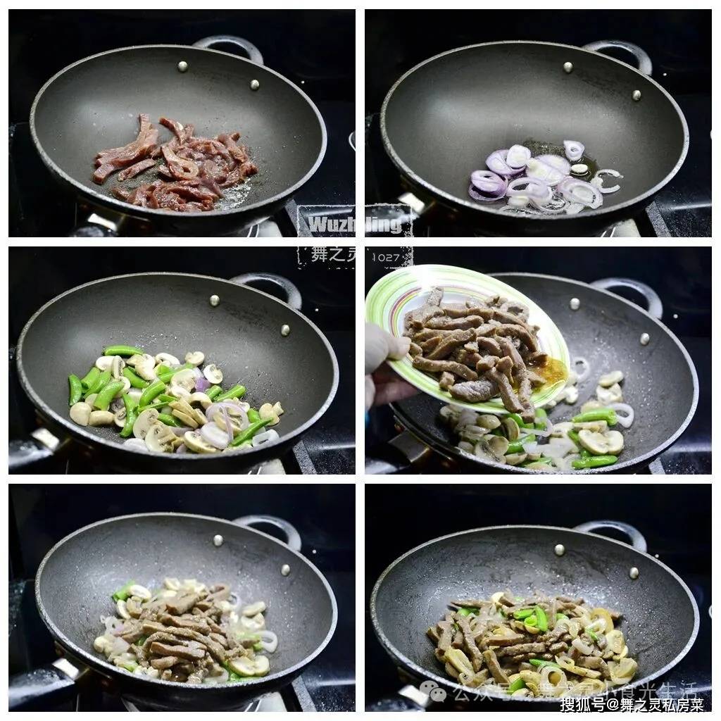 材料:牛肉(我用的腌制好的) 蘑菇 荷兰豆 洋葱 调料:盐 鸡精