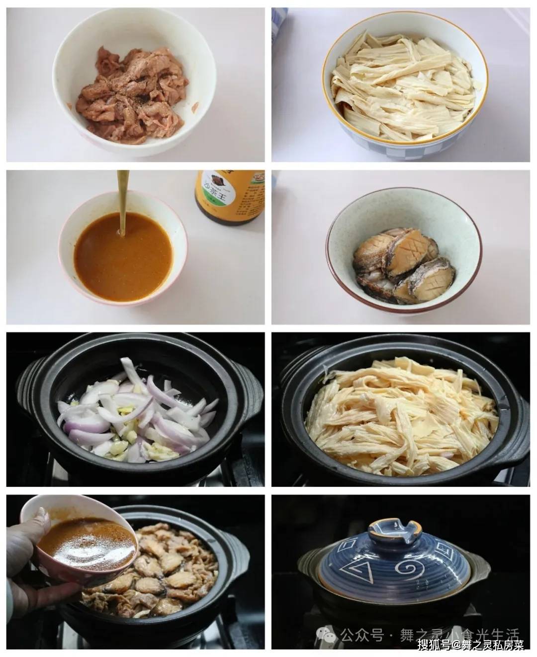 3、砂锅烧热倒入油,先放入洋葱、姜蒜煸炒出香味,接着把浸泡好的腐竹、牛肉和鲍鱼也一一摆放上去,沙茶酱淋上去,盖上盖子,小火焖煮10分钟左右。最后盖上盖子沿着锅边淋少许黄酒,继续焖5分钟左右撒上香菜末,拌匀就可以出锅啦。
