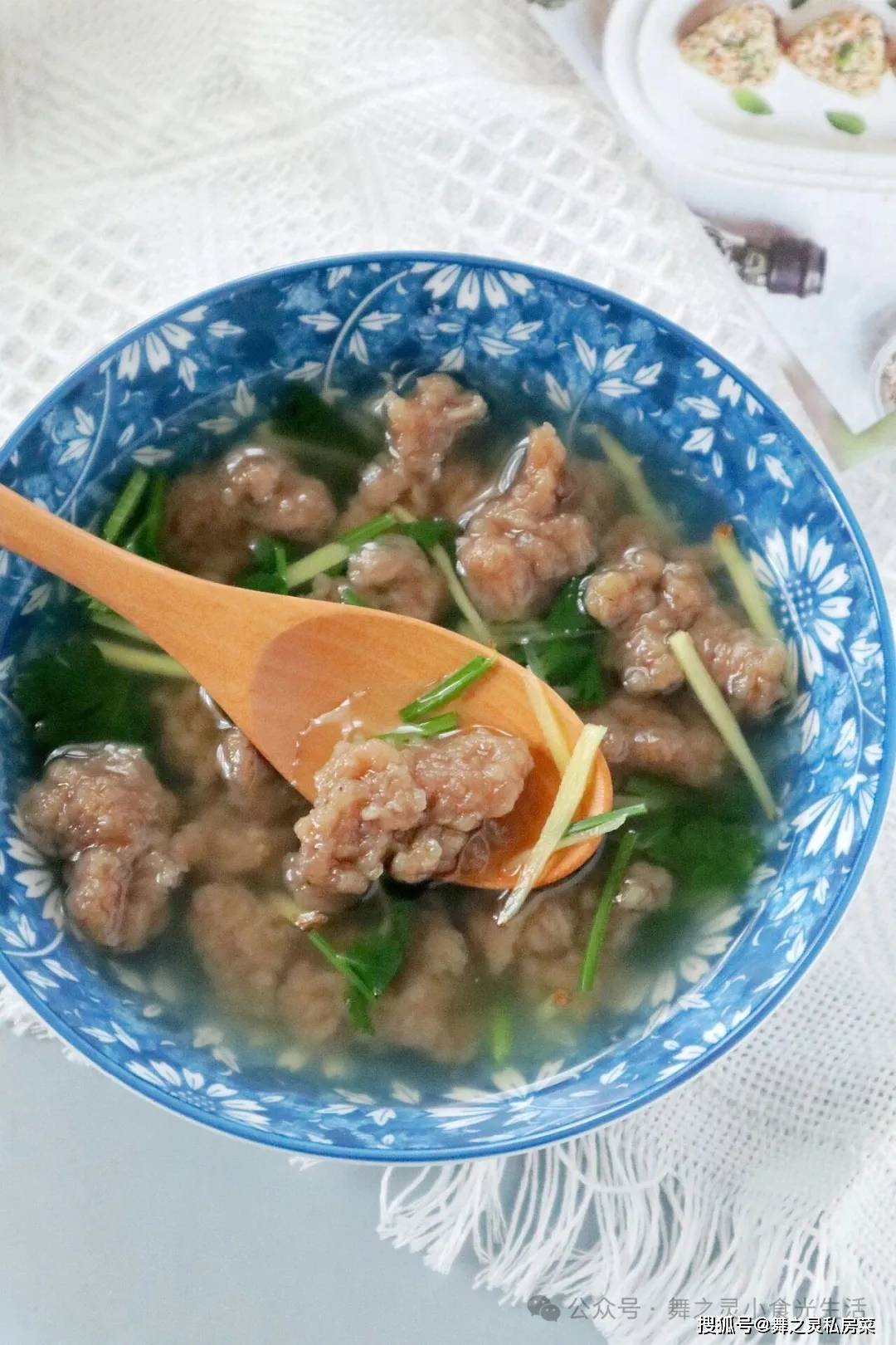 3、等锅中水微微开的状态,小火放入牛肉,煮开煮熟,最后姜丝、盐香菜调味就可以。