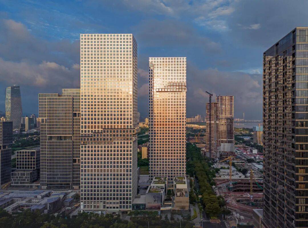 - 立面设计:采用4.5米×4.5米标准化幕墙模块,玻璃与铝型材虚实对比,在光影下产生丰富律动。裙房釉面陶板肌理细腻,在不同光线中呈现变幻效果。