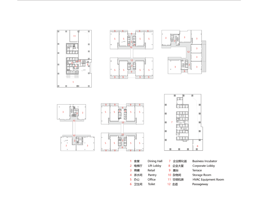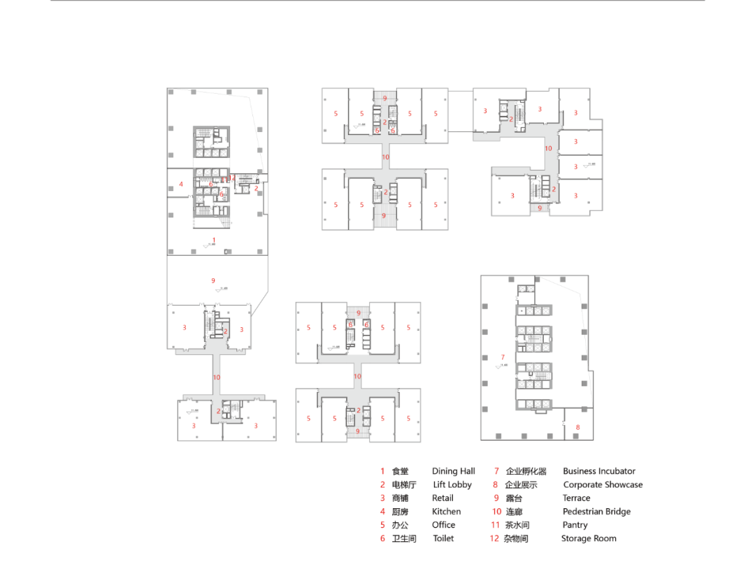 设计理念:强调“城市公共空间渗透”,通过口袋公园、空中连廊连接生态与商务功能 。