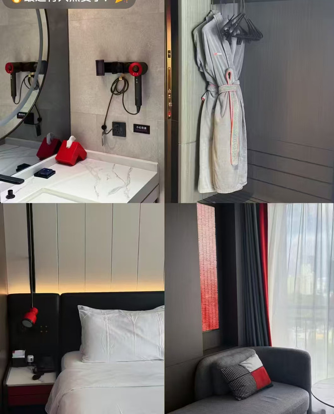 • 黑红撞色设计ins风十足,浴室配的是戴森吹风机